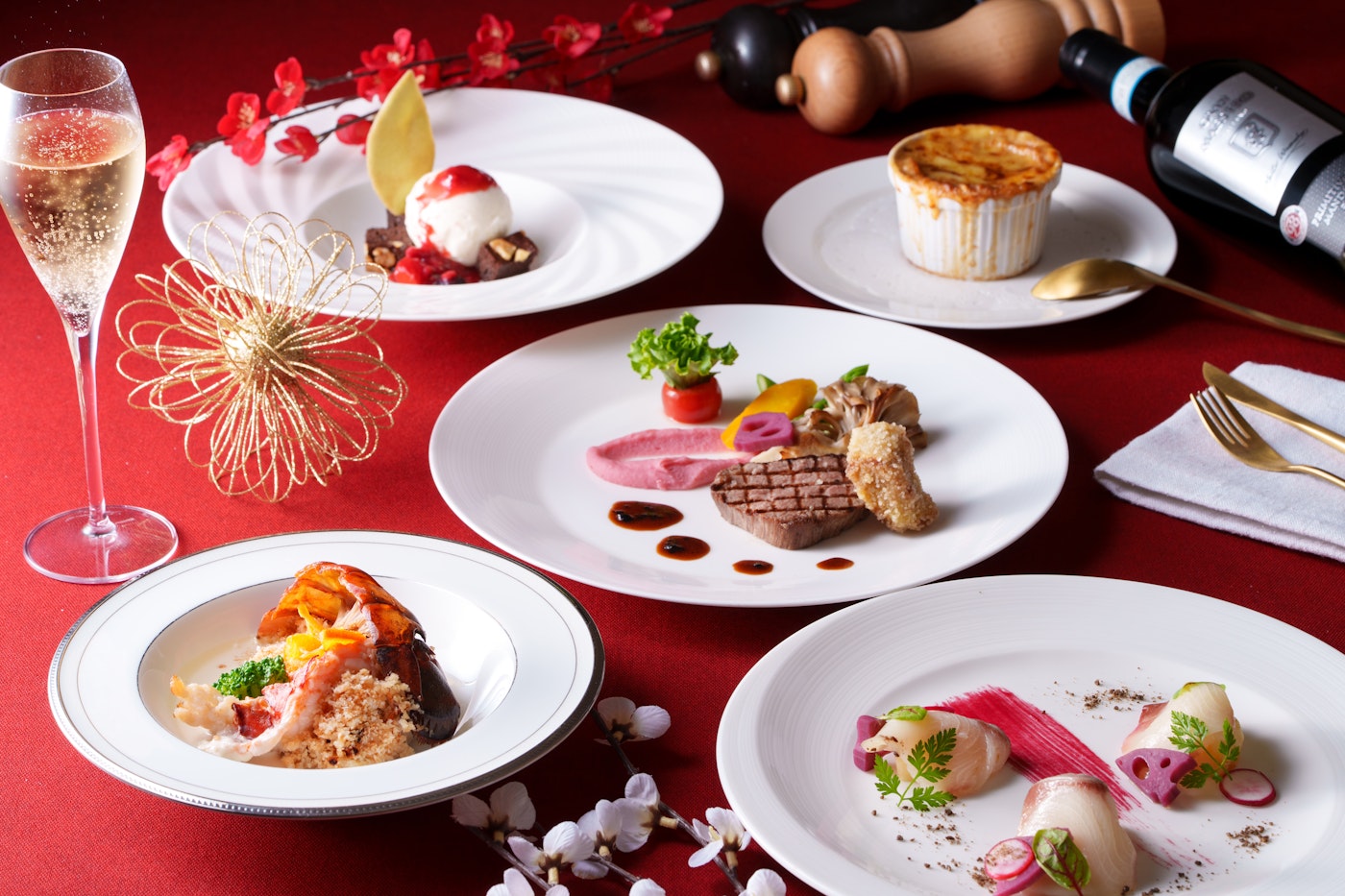 冬に旬を迎えるブリを色鮮やかなビーツのドレッシングと味わう前菜や、見た目にも豪華なオマールエビと宮城県産のホタテ貝、白身魚のポワレなど海の幸をご堪能いただけます。幻想的なライトアップ煌めくガーデンを眺めながら、年末年始限定のフレンチディナーコース付きステイプランで、非日常を感じながら「ちょっと贅沢な年末年始」をお過ごしください。
