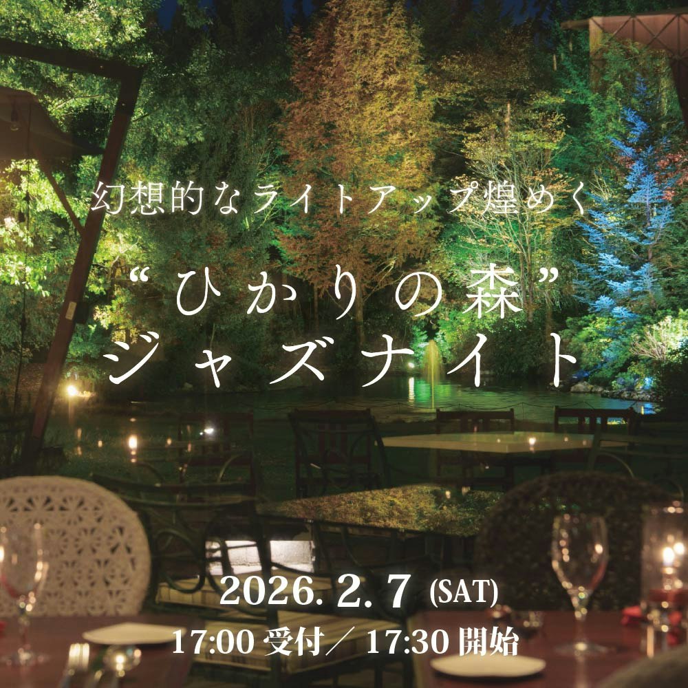 2026年2月7日(土)に、冬のガーデンライトアップと音楽を融合した特別イベント「幻想的なライトアップ煌めく、“ひかりの森” ジャズナイト」を開催いたします。