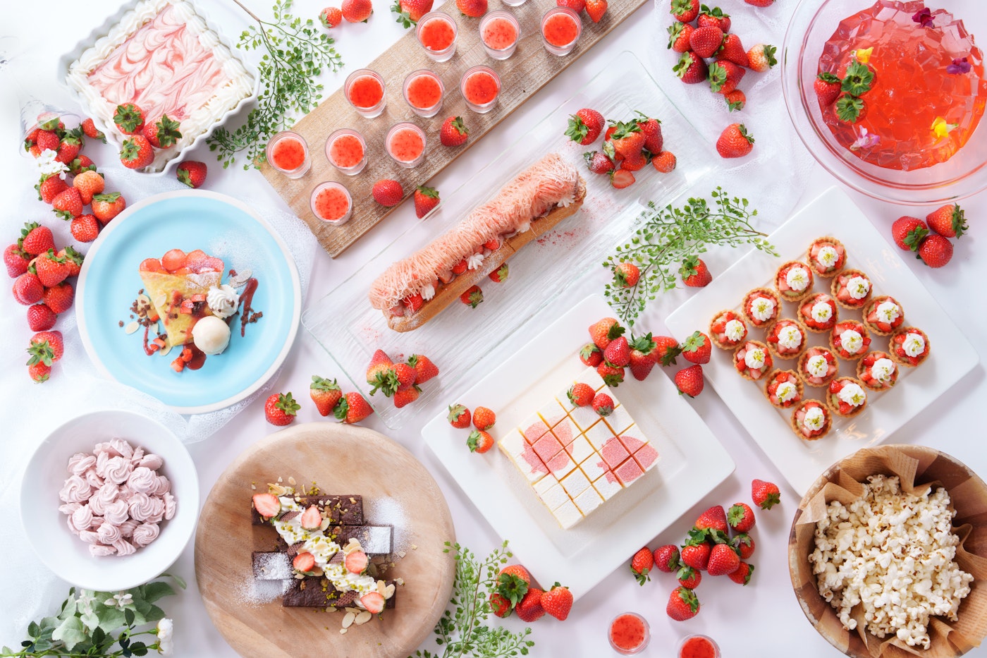 中段: 苺ショートケーキ、苺とピスタチオのタルト、苺マカロン