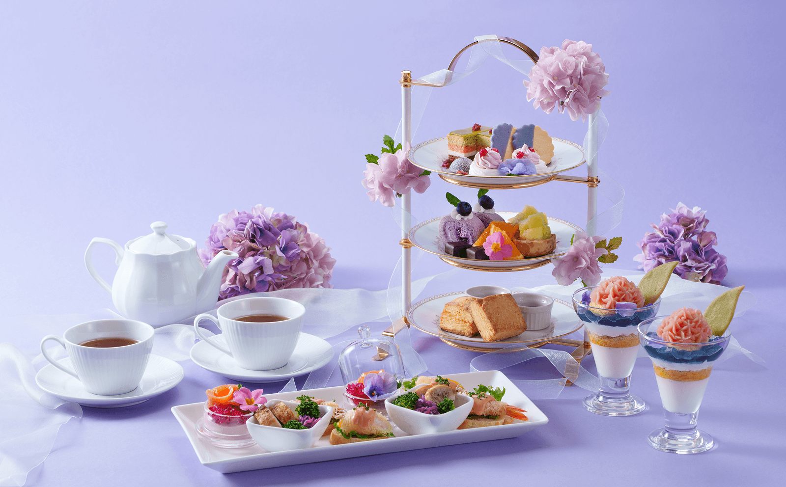 初夏を彩る紫陽花アフタヌーンティーセット