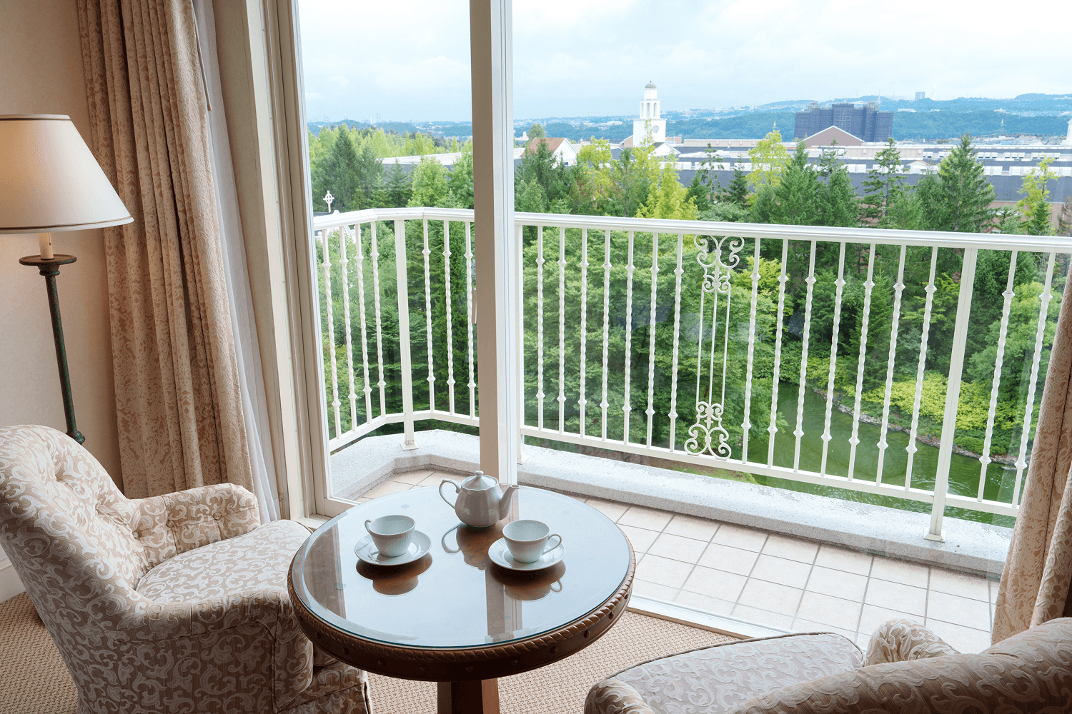 ガーデンを望むバルコニーで四季折々のリゾートステイをおたのしみください。
