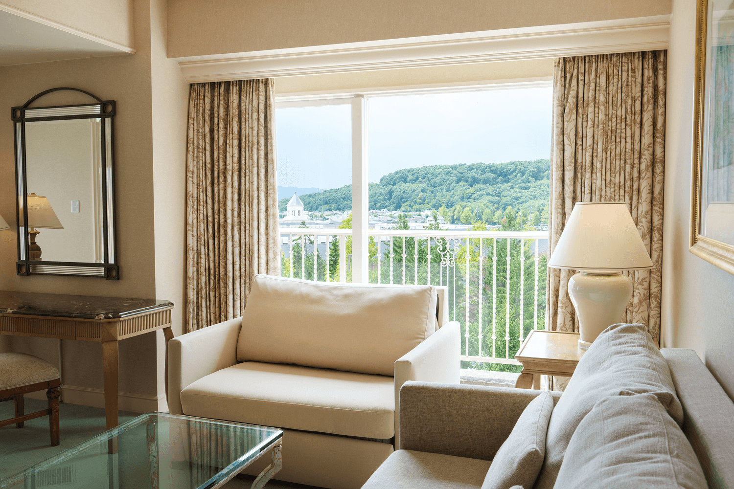リビングの居心地の良さやベッドルームの静けさはコーナースイートだからこそ。